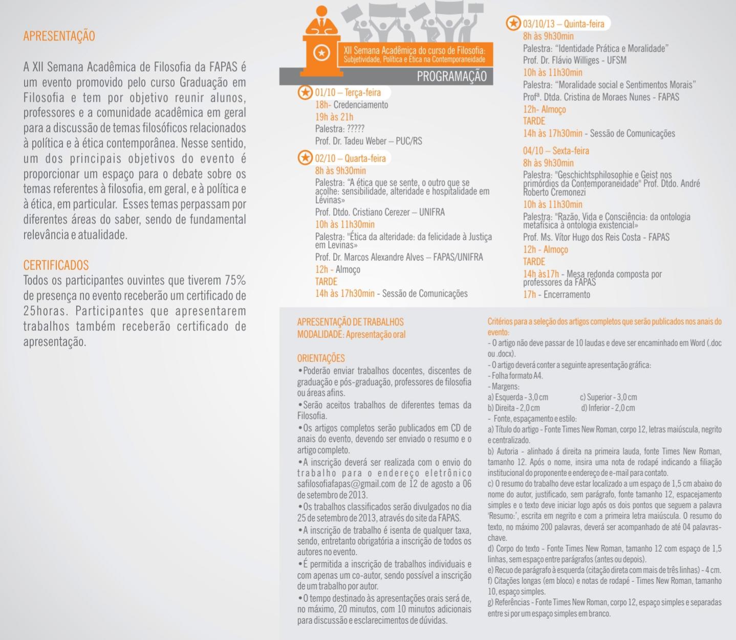 2013: XII Semana Acadêmica de Filosofia